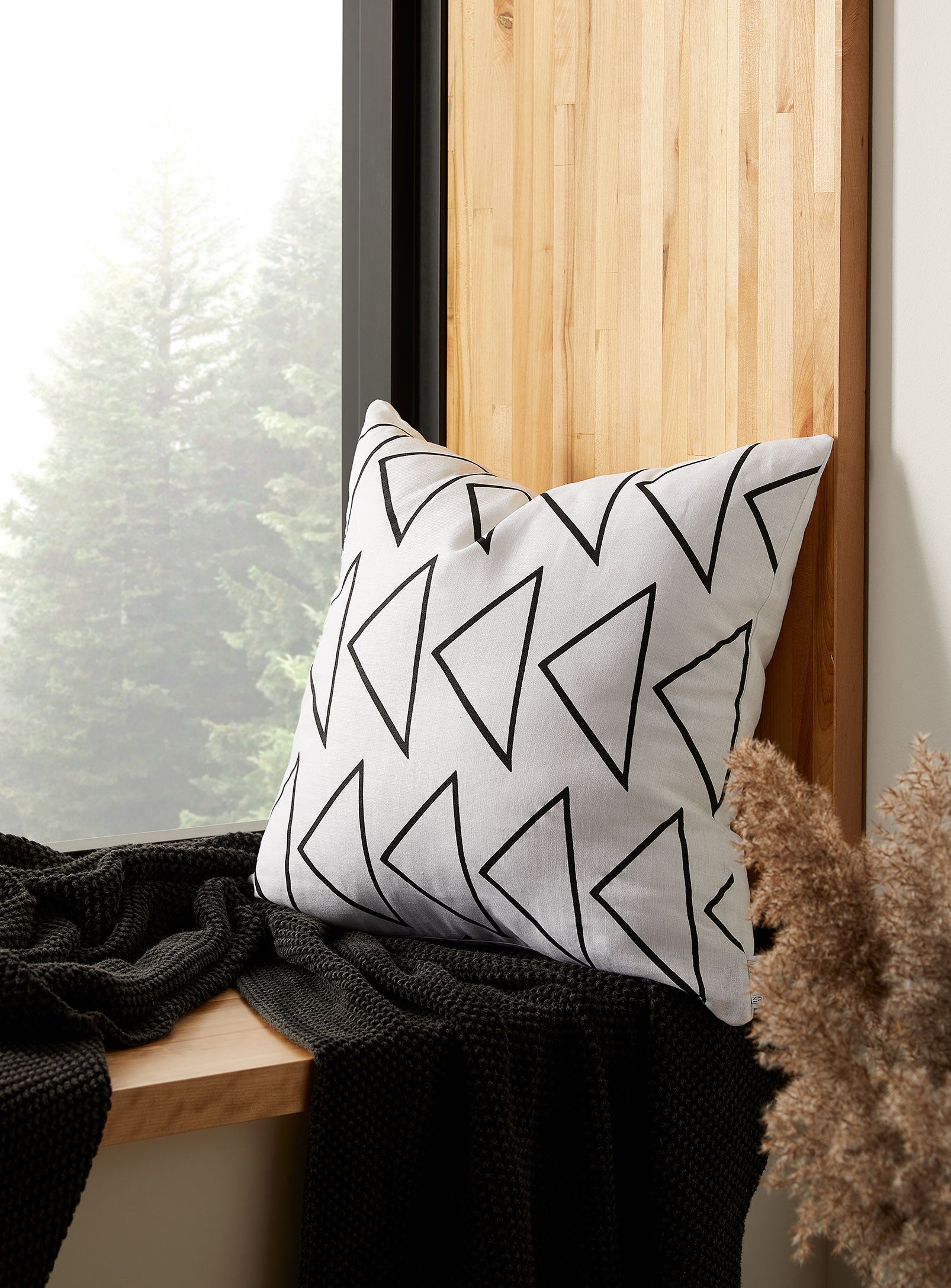 Asin means rock in Anishinaabemowin. The minimal design by Anishinaabe interior designer Destiny Seymour is her interpretation of the flint rock. This pillow is 20" x 20", made of 100% linen.