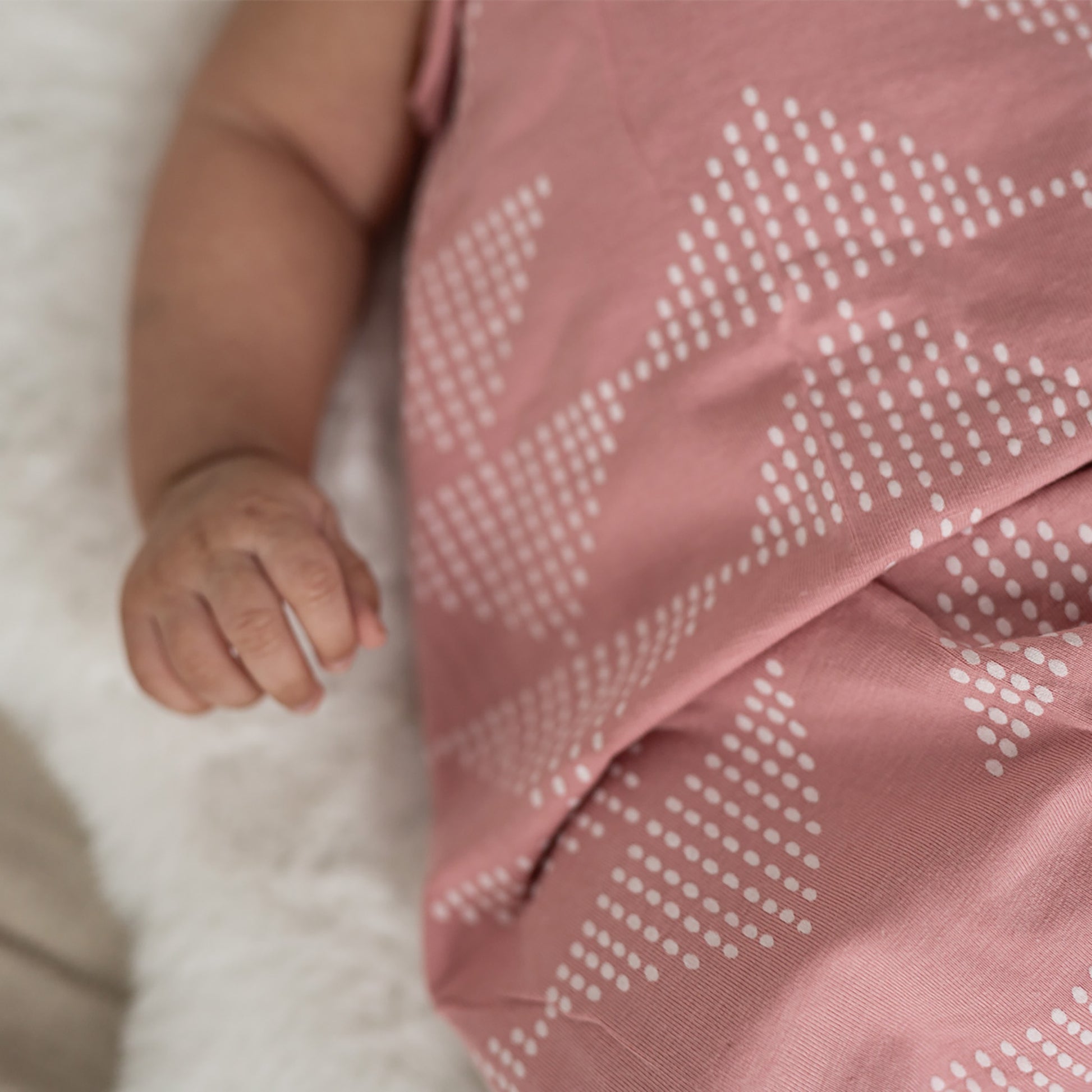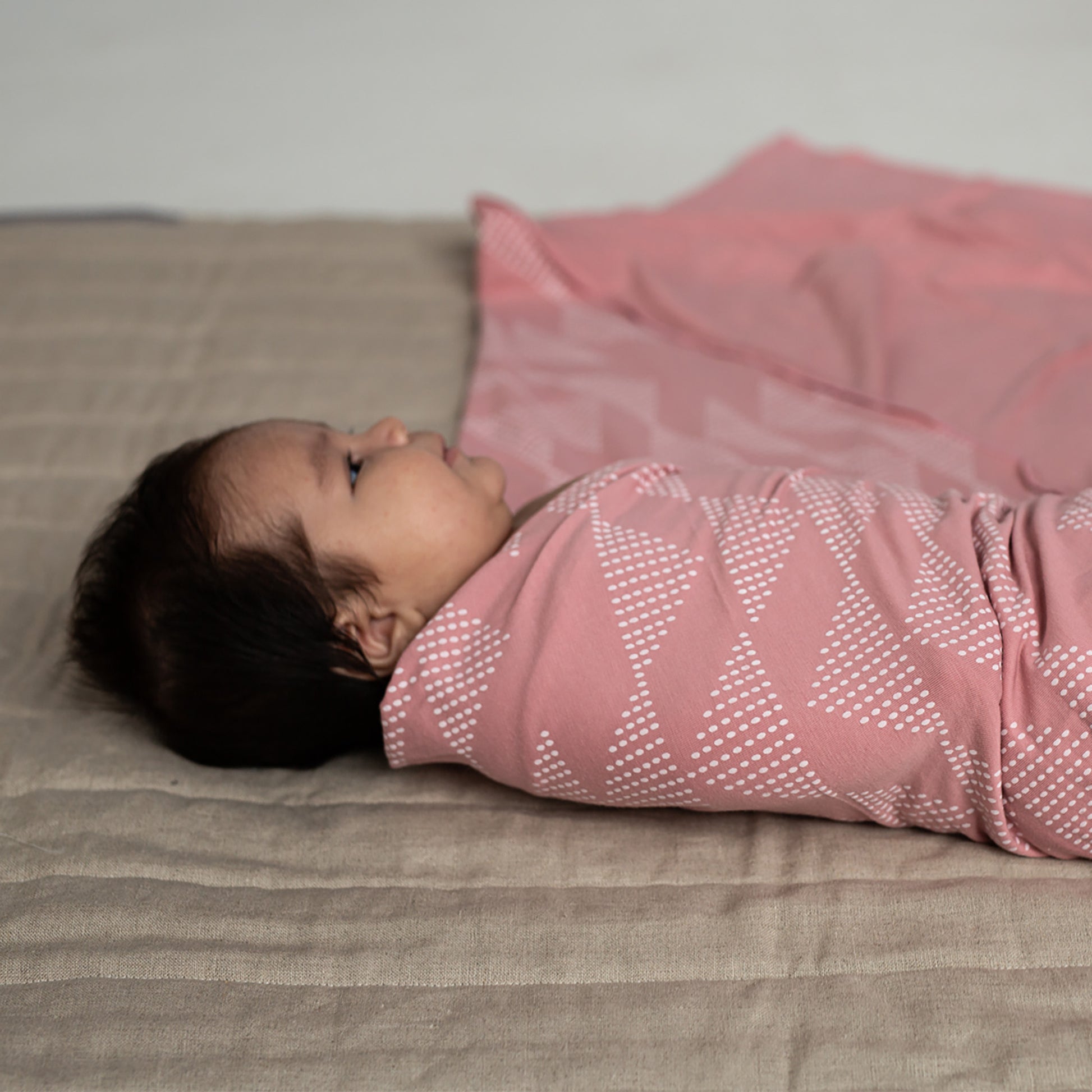 Our soft stretchy swaddles measure 48" x 48". Made with a mix of 40% cotton, 40% viscose, 15% bamboo & 5% lycra. Check out our matching crib sheet!